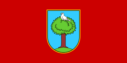 The flag of the municipality of Krašić is red, in ratio of length to width: 2:1, in accordance with the Law. In the centre of the flag, at the crossing point of the diagonals, is the coat of arms of the municipality, on both sides, edged with a golden ribbon.