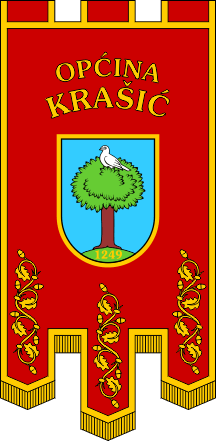 The symbols of Krašić are prescribed by Decision Odluka o grbu, zastavi i svečanoj zastavi (Općine Krašić, adopted on 26 January 1999 by the Municipality Assembly and published on 2 April 1999 in the Zagreb County official gazette Glasnik Zagrebačke Županije, No. 5.