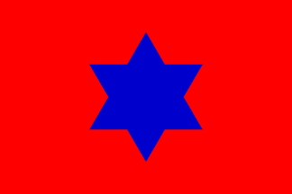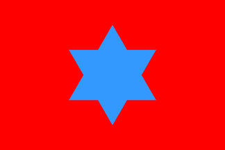 The house flag of Ungaro-Croato Libera, as shown by Isaić [isa01], is blue with a red six-pointed star in the middle.