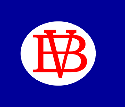 The house flag of Vesna, as shown by Isaić [isa01], is blue with a white oval containing the red letter "V" in Latin and Cyrillic script ("B").