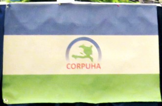 An image of the flag of CORPUHA, a Haitian non-profit Conference of Rectors, University Presidents and Institute Leaders can be seen at https://www.facebook.com/UniversiteUEH/photos