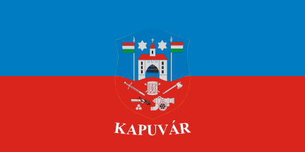 I have seen a small desk flag of Kapuvár in the Mayor's