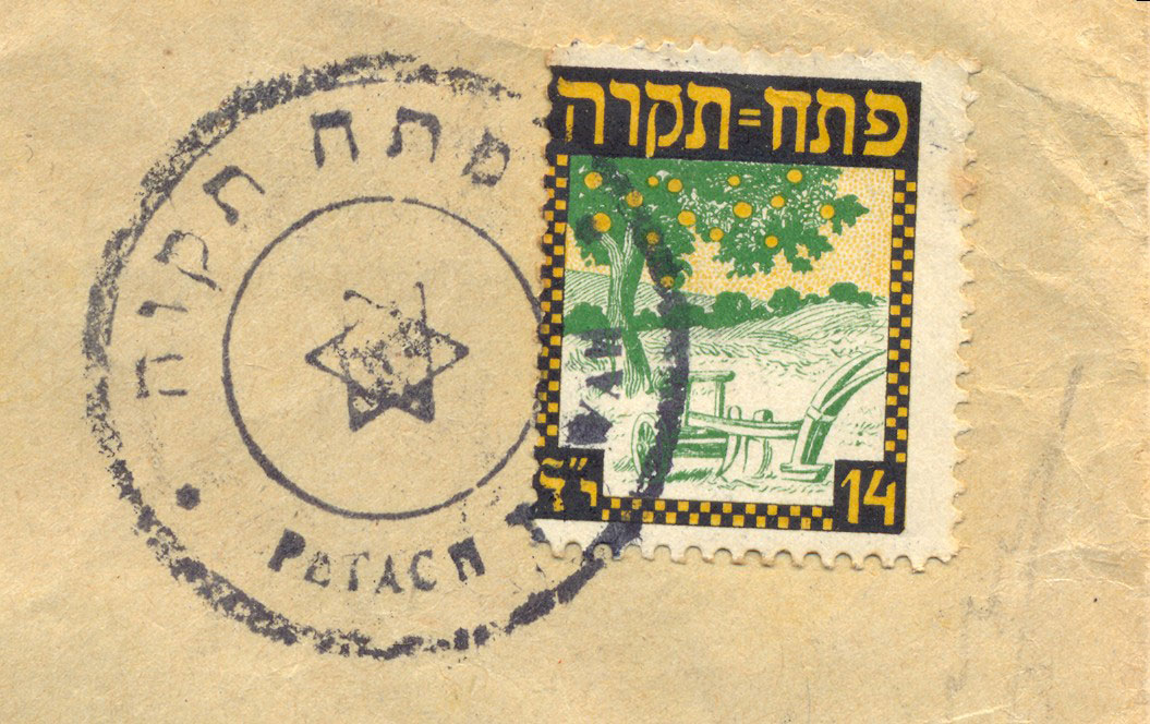 The story of the emblem of Petah Tikva started in 1908, as one of the settlers, Yitzhak David Goldenhirsch, agreed to open a branch of the Austrian Post in the colony, but under a condition that Petah Tikva will be permitted to issue its own stamp. After getting the approval, Goldenhirsch contacted an unknown artist who designed a stamp that symbolizes the colony: plough, orange tree and fields. This 14 Fara's (Ottoman currency) stamp [retrieved | picture], also known as the first Hebrew stamp, is the basis for the Petah Tikva emblem.