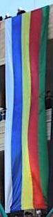 The only Druze flag is combined by a green triangle at the hoist side, and four horizontal stripes of red-yellow-blue-white. The meanings of the colours are: