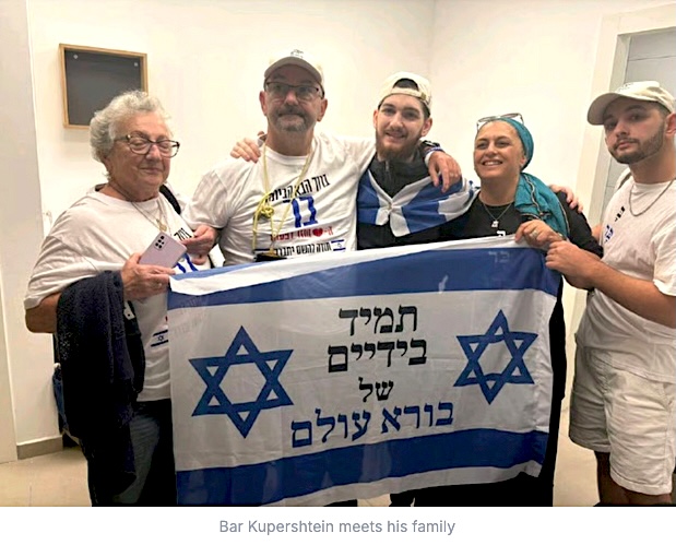 Israel, among them Bar Kupershtein (an IDF soldier on leave when taken captive), who holds an Israeli flag