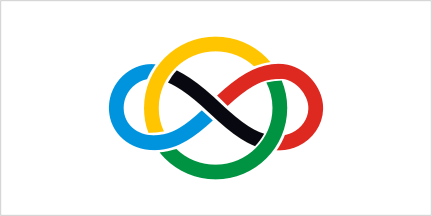 The flag of International Mathematical Olympiad - white with a circle and an infinity symbol in the Olympics colors. Image made after photo at