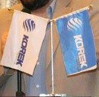 elements of the corporate flag are its logo (featuring a globe) and the