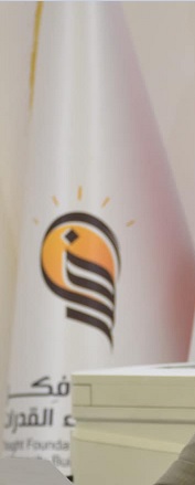 with the logo in the middle, the logo featuring a light bulb shape Arabic script
