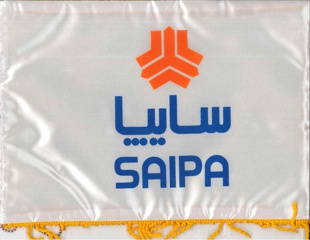 "SAIPA" = "Saipa Car Manufacturing Co." - a white flag with the logo centred.