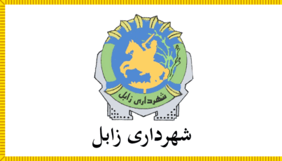The flag of Zabol is white with emblem and yellow fringe. On the bottom of