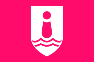 The flag of the town of Seltjarnarnes (pop. 4300) is white with emblem.