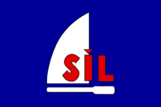 The flag of Maritime Association of Iceland is blue with logo elements.