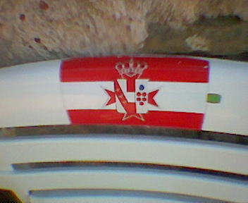 Toscani uses a horizontal red-white-red flags with a device in
