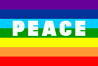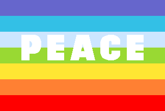 red; white inscription PEACE was over light blue and green. English word PEACE
