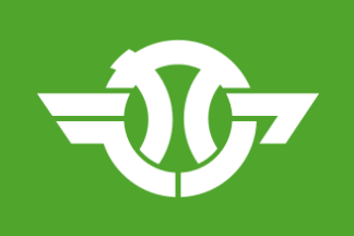 The village emblem was adopted on Sep 1st 1949 but there is no flag law. The blue flag has a white village emblem in the center. The village emblem depicts a special natural monument Japanese red-crowned crane. The wings represent the village’s development, peace, happiness and solidarity.