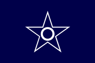 The city emblem was adopted in 1920 but there is no flag law. The blue flag has a white city emblem in the center. The five pointed star symbolizes the Polar Star and the circle inside does an armlet (Kushiro). It represents the city’s prosperity. According to the emblem law, the circle should not contact the star.