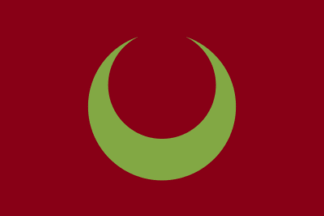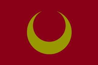 The flag of the town of Shibecha is maroon with mark. I found two colors of moon: green and gold.