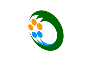 The city emblem was adopted Feb 11th 2005 by Notice No 1 but there is no flag law. The white flag has a green, a blue and an orange three color city emblem in the center. The city emblem is a stylized hiragana つ Tsu of Tsugaru and depicts rice stalks grown in abundance and beautiful waves of Japan Sea. The number of the ellipse symbolizes the former five town and villages. It represents a peaceful development of the city in harmony with the nature.