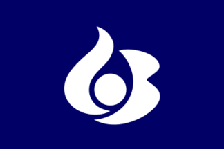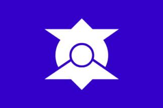 The flag of the former town of Johoku was blue with mark. The town is now,