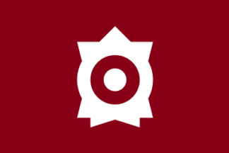 The flag of the former town of Ninomiya was maroon with mark. The town is now,