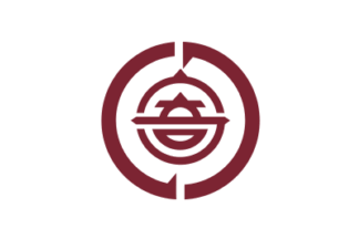 flag law. The white flag has a maroon town emblem in the center. The town emblem