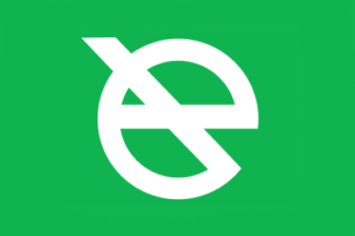 The flag of former town of Mine was green with mark. The town is now, from 2005, part of the town of Miyaki.