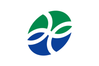 The flag of former town of Kitashigeyasu was green with mark. The town is now, from 2005, part of the town of Miyaki.