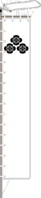 The war banner has white background with Asakura’s Kamon family emblem of three stacked Japanese quinces in black topped with a white Maneki small streaming flag.
