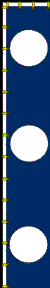He served under Toyotomi Hideyoshi and distinguished himself in many battles. He was attacked by Kobayakawa Hideaki, who turned to Tokugawa Ieyasu in the Battle of Sekigahara, and committed suicide. The war banner has dark blue background with three white circles.