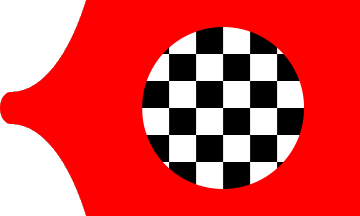 It is a red ogival pennant with a four times four white and black chess board in its centre. Some similar flags are already in our pages, this one has only 4x4 squares.