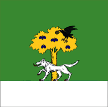 The flag is square, divided horizontally green over white, 3:1, with a yellow