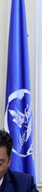 This picture (http://asem11.mn/...1014303791_o.jpg, source: http://www.asem11.mn/?p=2825&lang=mn) shows on left an image of a flag that seems to be Mongolian but I cannot identify it. It is a blue background flag with a logo of the Mongolian government but I can't identify it.