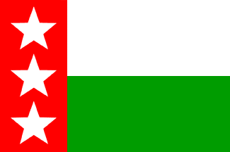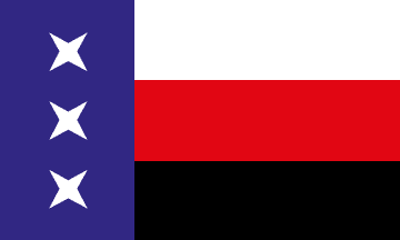 was divided in four parts, a vertical stripe in blue with three white stars, then three horizontal stripes, black at the bottom, red in the middle, and white at