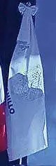 It is known that a flag with the municipal coat of arms and name below, probably the first municipal flag, has been used since the term of José Haro de la Torre (2016-2018) or earlier. But since the start of the term of Javier Torres Rodríguez (2024-2027), it appears that the name has been removed; only the coat of arms is visible.