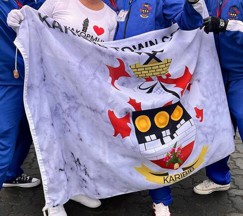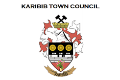 The flag of the Karibib Town Council in Regional Council of Erongo, is white with town coat of arms on it and full official name above it.