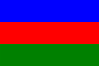The Ijaw People's Association uses the Ijaw Foundation flag with three horizontal stripes of blue, red and green with the Association's logo in the centre (Source: Ijaw People's Association website).