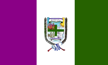 Vertically divided purple-white-green with the arms centered.