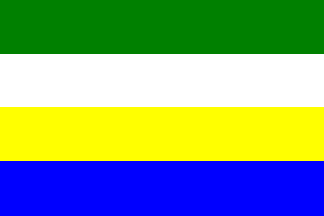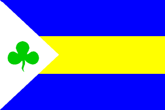 flag: the Frisian flag with in the left upper corner the municipal arms.