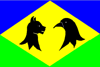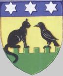 coat of arms: in gold a cat and a rook, both black and turned; the first sitting