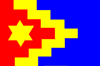 a yellow six-pointed star of 2/5 flag height; a yellow lengthened stepped