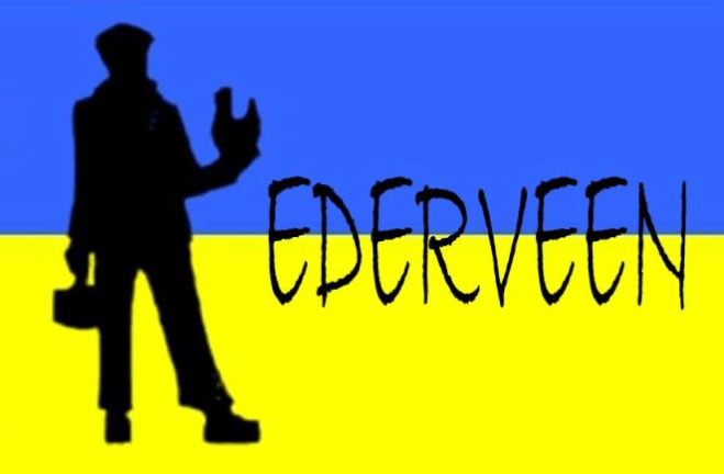 The flag, blue over yellow, depicting a man carrying a hen and an egg basket