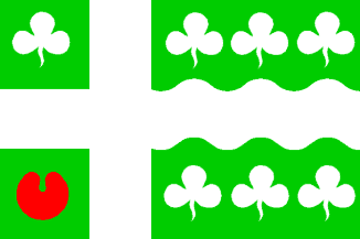 The cloverleaves on the flag symbolize the agricultural character of the municipality, while the heart-like object, a waterlilyleaf (pompeblêd) refers to the Frisian influence.