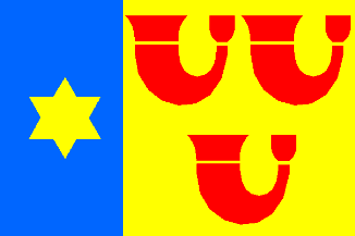For the flag the appropriate colors of the Coat of Arms were used. The diagonal