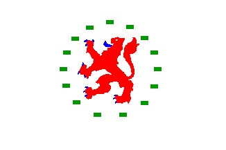 Flagdescription: white, with in the center a red, tongued and armed blue lion, surrounded by a circle of 15 green lying blocks.