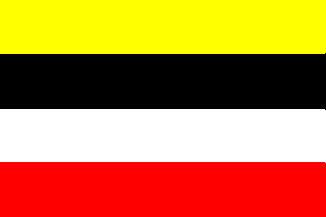 Flagdescription: four equally wide horizontal stripes yellow - black - white - red.