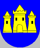 the canton on blue three yellow towers, the central one being a bit higher