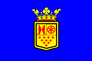 Flag: blue with in the center the crowned Coat of Arms of 13/20 flagheight.