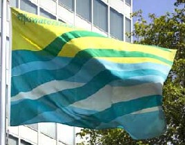 The current Rijkswaterstaat rectangular flag is a stripy affair.