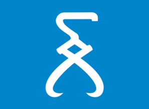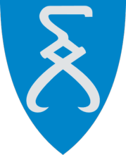 Blazon: I blått en opprett sølv tømmersaks. In English: Azure timber scissors argent.