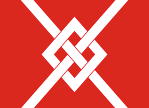 In English: Gules a fret argent.